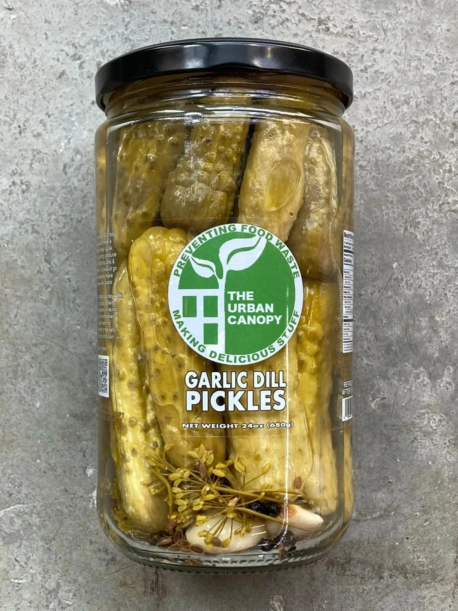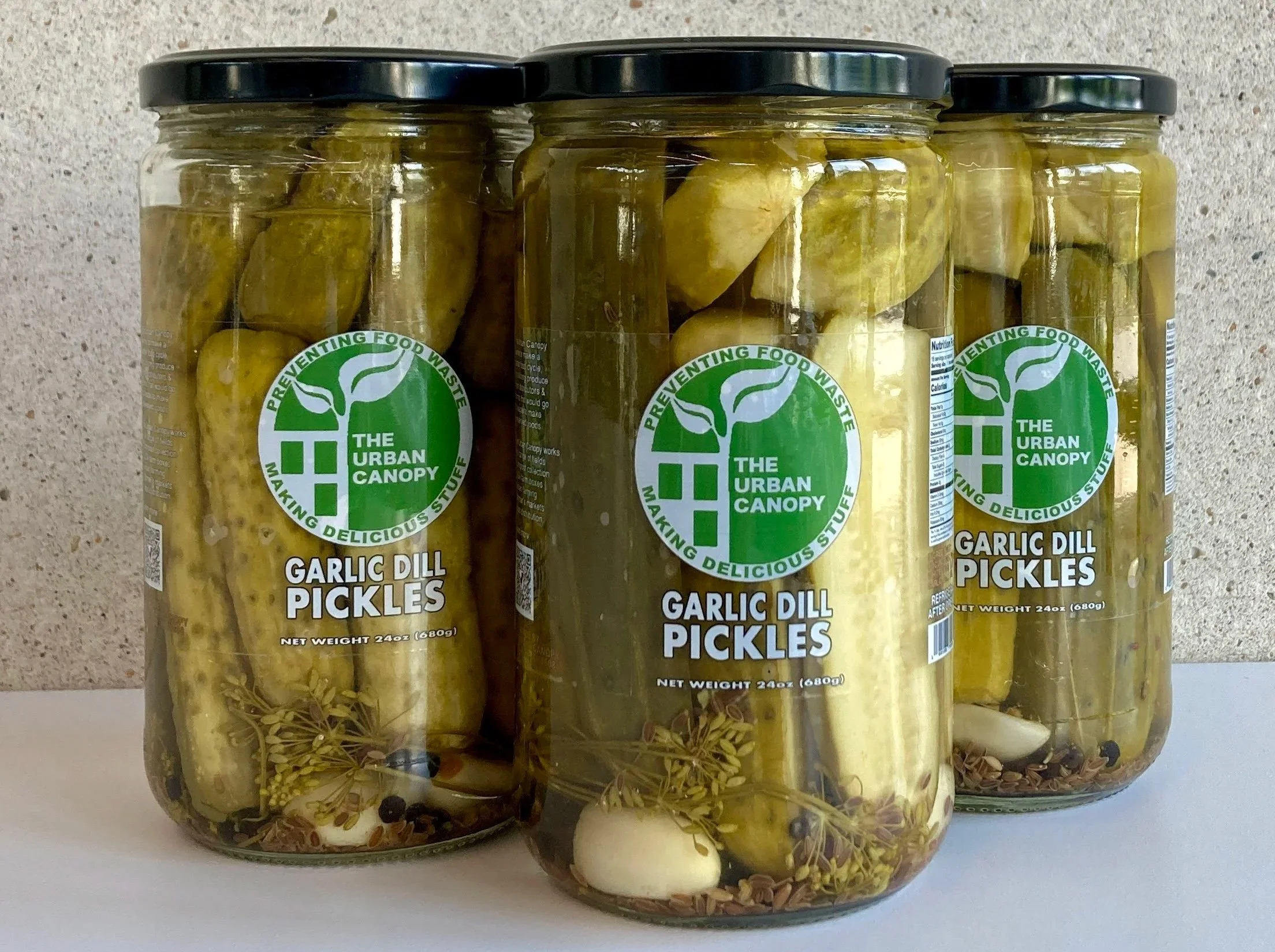The Urban Canopy Processing Kitchen makes a range of shelf stable pickled and preserved products. We aim to minimize waste by working with local farms and distributors to utilize excess produce that might otherwise go to waste. We make all of our products by hand in small-batches. We base our production on seasonal growing and what is available, so we are constantly looking for innovative new products and creative ways to use excess fruits and vegetables.