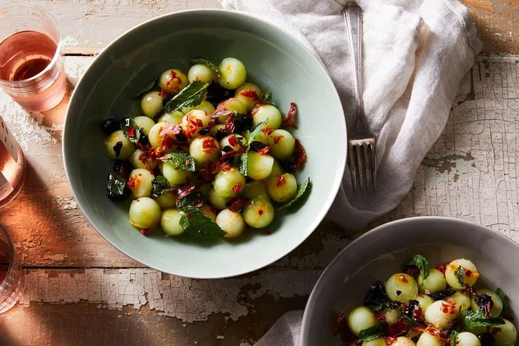 Ripen at room temperature on your counter. Melon will give off a noticeable aroma of melon when it is ripe and the flower end of the melon will have some give. Cut up into slices or squares and you can keep refrigerated for a week. If you do not want to cut the entire melon, leave the seeds in the uncut half and cover with plastic wrap.