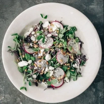 Remove from compostable green bag. Make sure greens are good and dry. You can wrap the greens in a paper or cloth towel to cut down on extra moisture. Then store in a plastic bag in the fridge for up to a week. Or keep on counter in a glass of water like a bouquet!