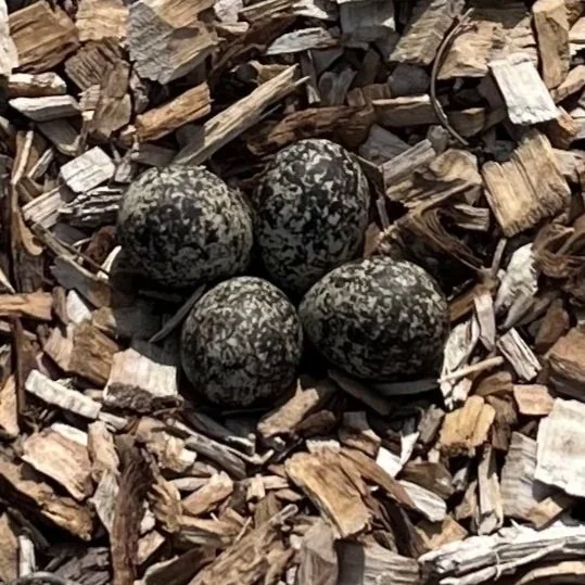 Okay story time!! If you were with us last year, you may remember we had a pair of killdeer plovers nesting in one of our beds! It was so cute and brought us so much joy! Unfortunately....their eggs did not make it, cue Letters to Cleo "Cruel to be Kind", probably due to the hawks in the area or the cats. Choose your own villain?? The pair did stay together in the area, even though they were bullied by the hawks! Some fun plover facts I learned from our guests; if a plovers nest is being attacked, one or the pair may split up to draw attention away from the nest by either fawning being hurt or use themselves to dive-bomb and screech at predators.